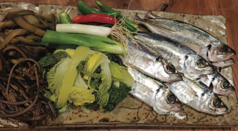 재료 : 매가리, 토란대, 고사리, 얼갈이배추, 대파, 청량고추, 고추, 방앗잎, 다진 마늘