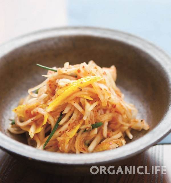 무는 적당한 굵기로 채 썰고, 쪽파는 적당히 썰며, 유자는 반을 갈라 씨를 빼어 또 2등분해서 가늘게 채 썬다. 이 재료들을 볼에 담고 양념을 넣어 버무리면 된다. 국간장으로 마무리 간을 하면 깊은 맛을 느낄 수 있으며 막걸리식초를 쓰는 것도 좋다. 기호에 따라 청량고추를 가늘게 채 썰어 넣어주면 매콤함이 입맛을 돋우어 준다.